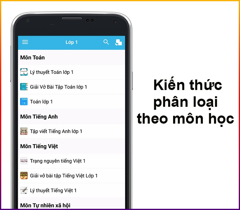 Nội dung bài học trong ứng dụng được phân chia từng lớp học, mỗi lớp học sẽ được phân loại theo từng môn học, giúp các em học sinh và phụ huynh dễ dàng tìm kiếm thông tin, kiến thức