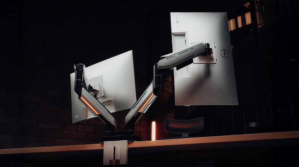 Việc sử dụng giá treo màn hình đôi giúp giải phóng đáng kể diện tích mặt bàn, tạo thêm không gian cho bàn phím, chuột và các phụ kiện khác. Hai màn hình được đặt ở vị trí lý tưởng giúp bạn dễ dàng xử lý đa nhiệm, chuyển đổi giữa các cửa sổ làm việc một cách nhanh chóng và hiệu quả. Đây là giải pháp rất phù hợp cho designer, lập trình viên, dân văn phòng hoặc những người thường xuyên làm việc với nhiều nội dung cùng lúc.
