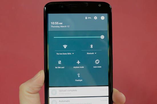 Từ Android 5.1, bạn sẽ được đưa tới màn hình chủ nếu thực hiện thao tác vuốt từ dưới lên khi đang ở màn hình cài đặt nhanh (trong trường hợp không dùng tính năng bảo mật nào như mật khẩu hay mã PIN).