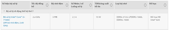 Chỉ có một phiên bản CPU i3 thế hệ 7