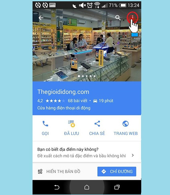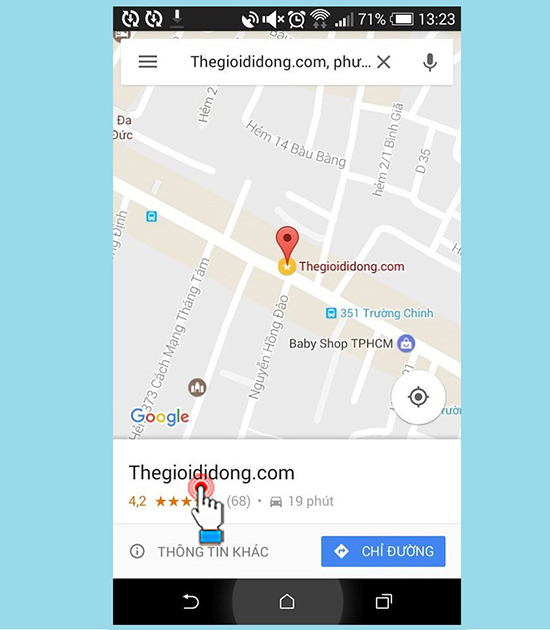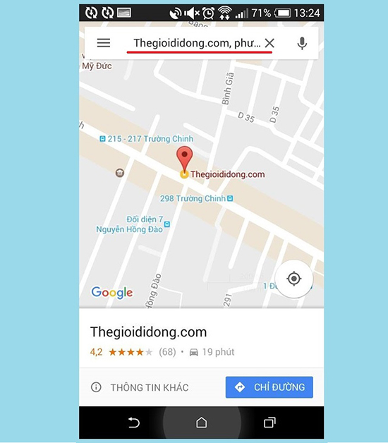 Bước 2: Sau khi tải và cài đặt xong bạn khởi động ứng dụng Google maps. Nhập từ khóa vào ô tìm kiếm để tìm kiếm địa điểm rồi nhấn tìm kiếm (ở đây chúng tôi tìm kiếm "thegioididong"). .