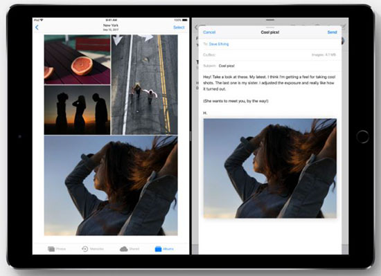 15. Tiếp theo, Apple cũng mang lại cơ chế "kéo/thả" làm cho khả năng đa nhiệm của iPad thật sự hữu ích. Người dùng có thể chia đôi màn hình để chạy hai ứng dụng song song.