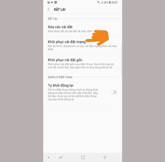Bước 3: Khôi phục cài đặt mạng (Reset network settings).
