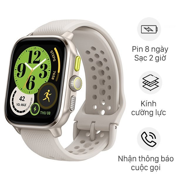 Đồng hồ thông minh Amazfit GTS 3 | - Màn hình: AMOLED, 1.75 inch, 390 x 450 pixels. - Kích thước mặt: 42.4 mm. - Hình dáng mặt: Chữ nhật. - Chất liệu mặt: Kính cường lực. - Kích thước, khối lượng: Dài 42.4 mm, ngang 36 mm, dày 8.8 mm, nặng 24.4g. - Thời lượng pin: Khoảng 12 ngày. - Tính năng cho sức khỏe: Chế độ luyện tập, hệ thống đánh giá sức khỏe PAI, theo dõi chu kì kinh nguyệt, theo dõi giấc ngủ, theo dõi mức độ stress, tự động phát hiện chế độ tập luyện, đo nhịp tim, đo nhịp tim cổ tay dưới nước, đo nồng độ oxy trong máu (SpO2). - Chống nước: Kháng nước 5 ATM. - Kết nối: Bluetooth v5.1. | 700.000 đồng | 3.490.000 đồng |