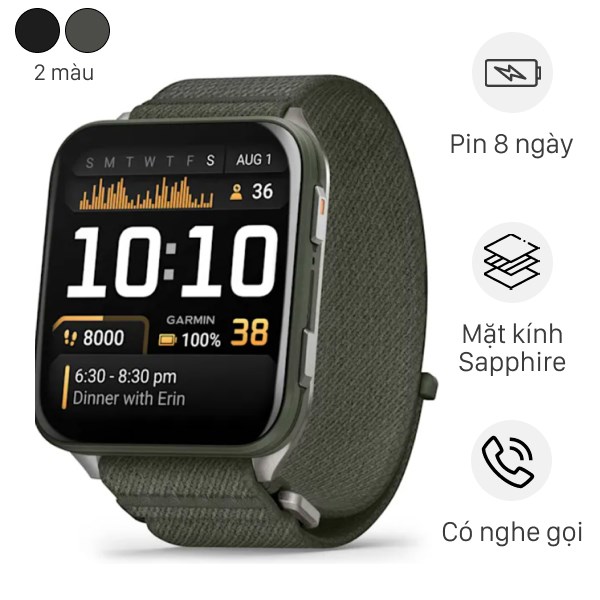 - Tính năng sức khỏe: Đo lượng tiêu thụ oxy tối đa (VO2 max), đo nồng độ oxy trong máu (SpO2), tính tuổi thể chất, đo chỉ số năng lượng cơ thể, theo dõi nhịp tim 24h, theo dõi giấc ngủ, theo dõi mức độ stress, theo dõi nhịp thở, theo dõi chu kì kinh nguyệt, nhắc nhở nhịp tim cao, thấp, đo nhịp tim,...