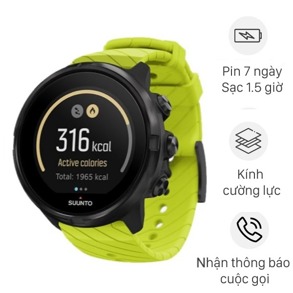 - Suunto 9 hai phiên bản màu xanh lá và đen, kích thước mặt 50mm giá 7.860.000đ. Đây là mức giá đã được ưu đãi chào hè lên đến 40%.