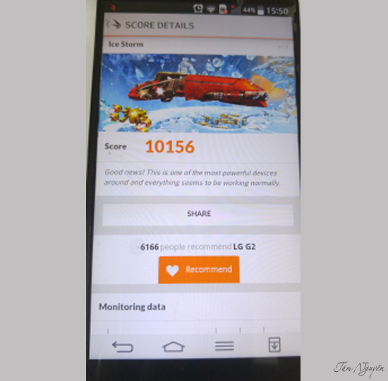 - Ở đây, ta thấy về hiệu năng đồ hoạ 3D, LG G2 vẫn chứng tỏ sức mạnh vượt trội với mức điểm khoảng 10100 trong khi M4 chỉ khoảng 7100.