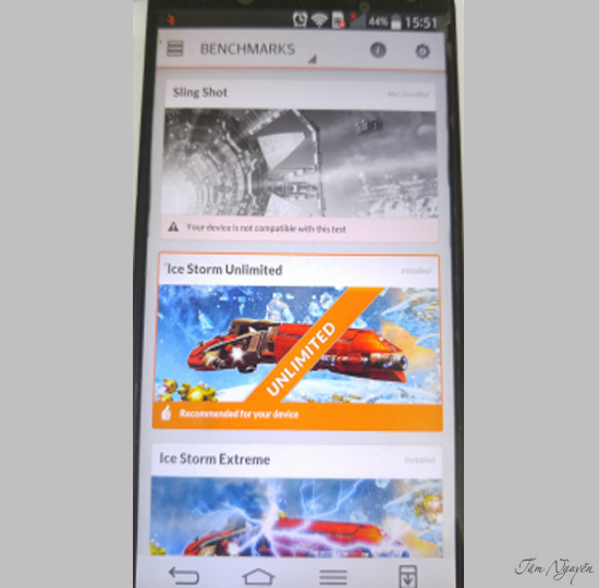 Vậy với dòng chip Snapdragon 615 mới ra mắt thì có điểm gì nổi trội hơn. Mình sẽ thực hiện thêm 1 bài kiểm tra khác với 3D Mark cùng với 2 thiết bị LG G2 và Sony M4 Aqua.