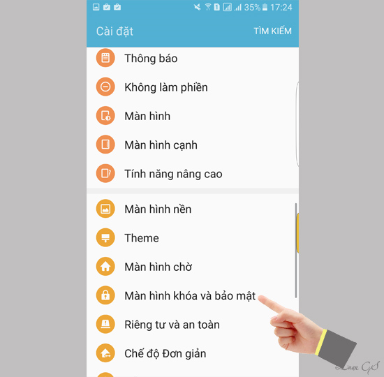 Bước 2: Vào tiếp " Màn hình khóa và bảo mật".