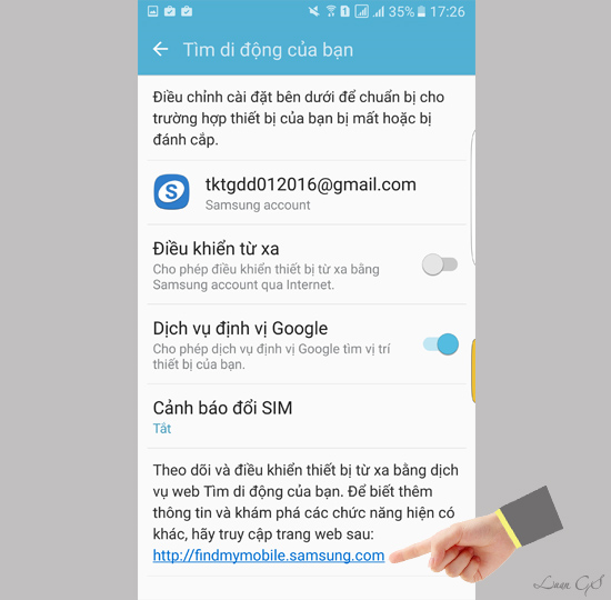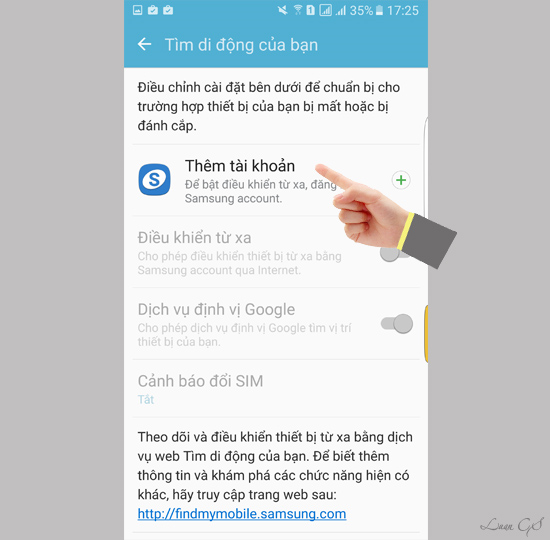Đây là tính năng dẽ hỗ trợ bạn định vị và điều khiển thiết bị từ xa thông qua tài khoản Samsung.
