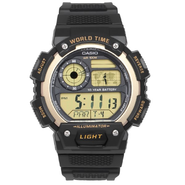 CASIO 45.4 mm Nam AE-1400WH-9AVDF được trang bị khung viền nhựa PC bền bỉ và dây đeo nhựa có trọng lượng nhẹ, không thấm nước. Mẫu đồng hồ nam này có hệ số chống nước là 10 ATM giúp bạn yên tâm khi đi bơi với bạn bè nhưng bạn cũng không đeo trong lúc lặn.