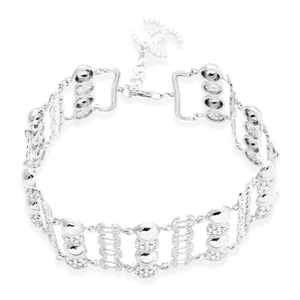 Lắc Tay AvaJi AVJ.B000075 sở hữu vẻ ngoài tinh tế, trang nhã với thiết kế tỉ mỉ, kỳ công. Các dãy hạt cườm màu bạc và đính đá xen kẽ nhau, tiếp tục được ghép nối xen kẽ với hoạ tiết trang trí chưa từng hạ nhiệt - biểu tượng thương hiệu Chanel. Tất cả tạo nên một tổng thể hài hoà cho chiếc lắc tay bản lớn tinh tế, phong cách.