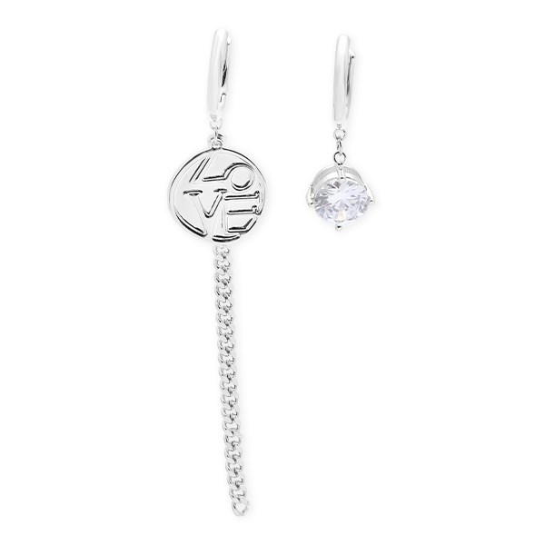 Bông Tai AvaJi AVJ.E000257.00 thiết kế không đối xứng với 1 bên là kiểu bông tai dài mặt hình chữ LOVE và 1 bên ngắn hơn mặt đính đá CZ tinh tế. Mẫu bông tai tạo nét phá cách trong phối trang sức và trang phục của bạn, vừa đảm bảo tính thanh lịch, trẻ trung, vừa thêm phần cá tính cho ngoại hình.