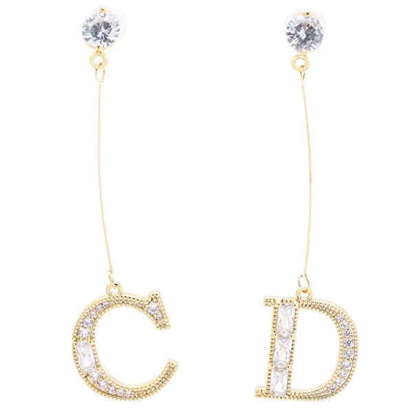 AvaJi AVJ.E000267.00 toát lên nét sang trọng, quyến rũ trong thiết kế bông tai dài có dây đeo thanh mảnh và phần chữ đính đá CZ lấp lánh, màu vàng ánh kim hút mắt, 2 bên là 2 mẫu chữ C và D riêng biệt tạo điểm nhấn tốt.