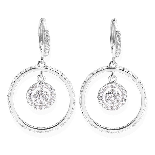 Bông tai AVJ.E000155.00 tiếp tục là một thiết kế bông tai tròn khác nữa nhưng nổi bật hơn với 2 vòng tròn lớn đều được đính đá quý lấp lánh, sang trọng.