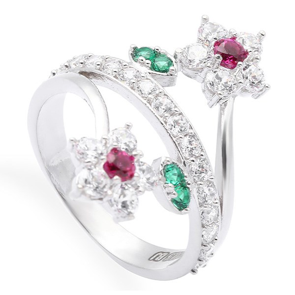 Nhẫn Mạ Vàng Trắng AvaJi AVJ.R000468 | Mặt hình hoa | 9 - 11 - 13 | 2.41 | - Màu nhẫn: Bạc - Màu đá đính: Trắng, xanh lá | 288.000 |