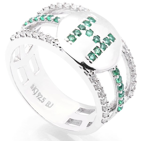 Nhẫn Mạ Vàng Trắng AvaJi AVJ.R000515 | Mặt hình tròn, đá quý xếp thành chữ H | 9 - 11 - 13 | 3.76 | - Màu nhẫn: Bạc - Màu đá đính: Trắng, xanh lá | 286.000 |