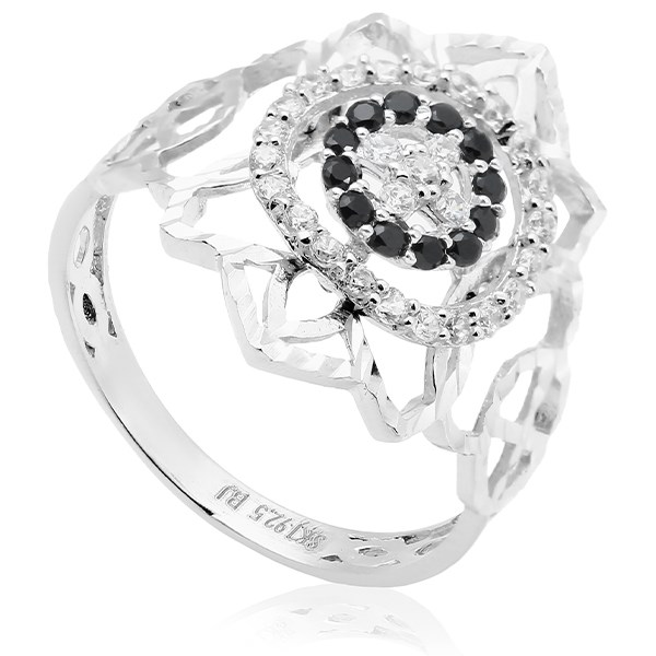 Nhẫn Mạ Vàng Trắng AvaJi AVJ.R000572 | Mặt hình hoa | 9 - 11 - 13 | 1.41 | - Màu nhẫn: Bạc - Màu đá đính: Trắng, đen | 226.000 |