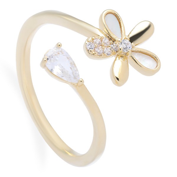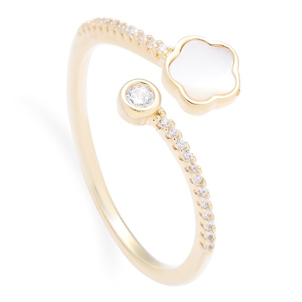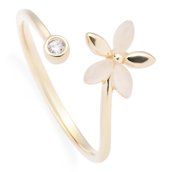 Nhẫn Kim Loại Đính Đá AvaJi AVJ.R000717.00 | Bản trơn, vòng hở, mặt hình hoa mai | 17.08 | 1 | Vàng | 76.000 |