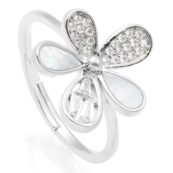 Nhẫn Kim Loại Đính Đá AvaJi AVJ.R000771.00 | Mặt hình hoa mai, mỗi cánh được trang trí khác nhau | 16.8 | 1.66 | Bạc | 109.000 |