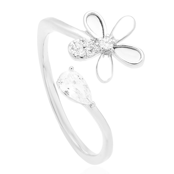 Nhẫn Kim Loại Đính Đá AvaJi AVJ.R000785.00 | Bản nhỏ, vòng hở, mặt hình hoa mai | 17.41 | 1.19 | Bạc | 95.000 |