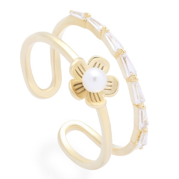 Nhẫn AVJ.R000719.00 có thiết kế vòng đôi gồm 2 mặt nhẫn hình hoa mai duyên dáng, các chi tiết đính đá và đính ngọc trai cũng được kết hợp một cách hài hòa. Thiết kế này sẽ phù hợp với phong cách sang trọng và nữ tính, các bạn có thể tham khảo nhé!
