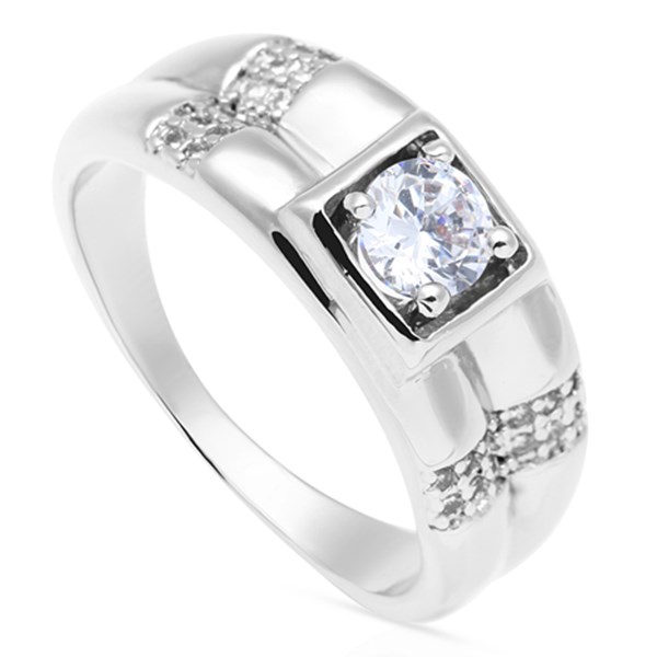 Nhẫn nam hình thoi đính đá sang trọng