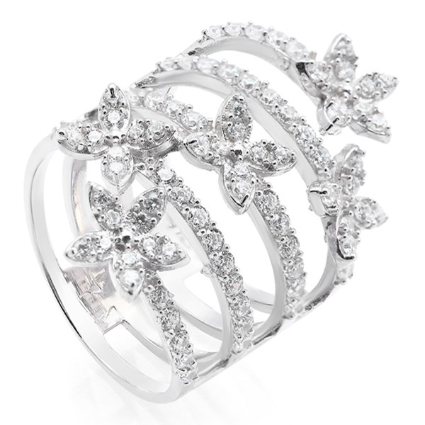 Nhẫn thiết kế 4 vòng hình đính đá hình bông hoa