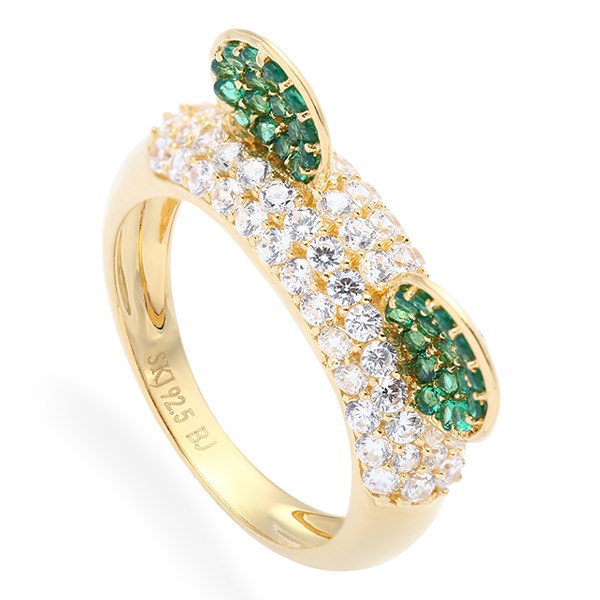Nhẫn Bạc Đính Đá Mạ Vàng 18K AvaJi AVJ.R000364 | Hình đôi tai màu xanh lá | 11mm - 13 mm | 2.76 | Vàng | 220.000 |
