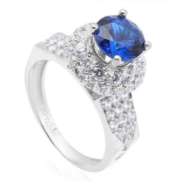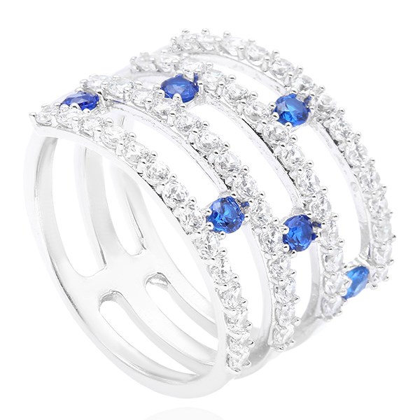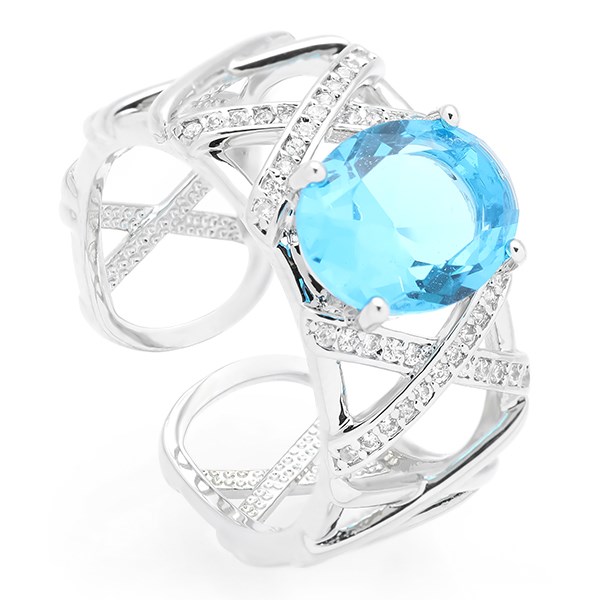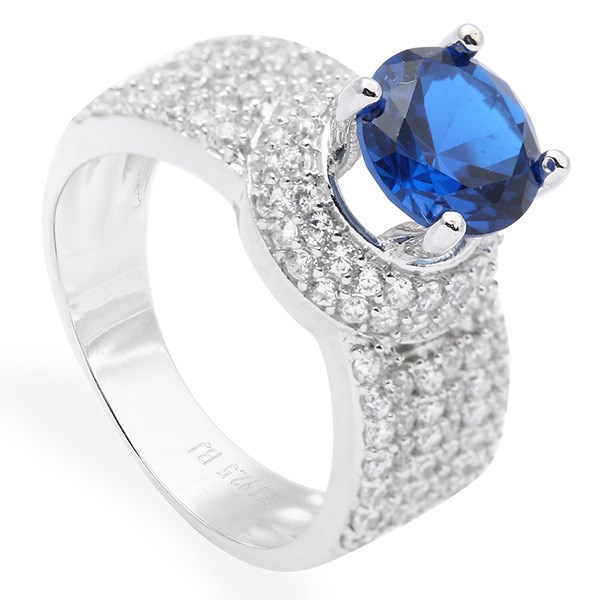 Thiết kế nhẫn ấn tượng, với kiểu dáng bản to đính đá màu xanh nổi bật