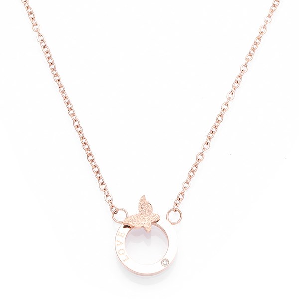 Dây chuyền AVJ.N000380.00 có phần mặt hình vòng tròn khắc chữ LOVE và 1 cánh bướm nhỏ đậu ở bên trên vòng. Với chiều dài dây vừa phải, kích thước nhỏ gọn, đây sẽ là thiết kế phù hợp để đeo trong mọi hoàn cảnh và giúp phần cổ, vai của bạn trông thanh thoát, nhẹ nhàng hơn.
