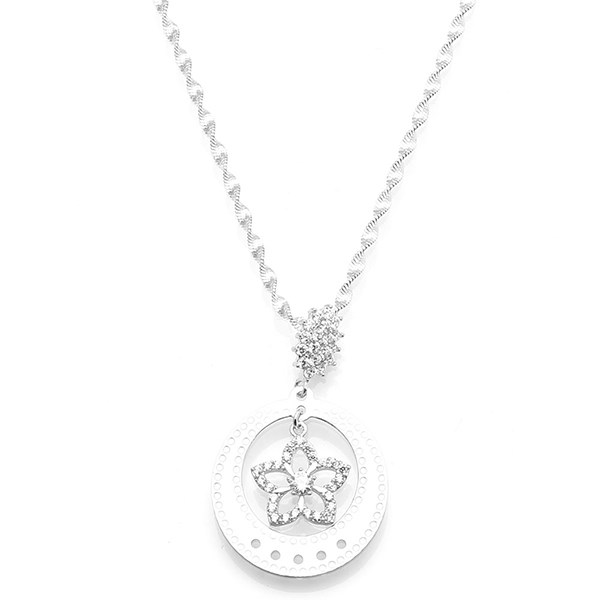 Dây Chuyền AvaJi AVJ.N000201.00 là mẫu dây chuyền bạc sang trọng, phần dây được thiết kế dạng xoắn mang đến sự mềm mại. Phần mặt dây chuyền là hình hoa được bao trọn bởi viền tròn, đính đá sang trọng.