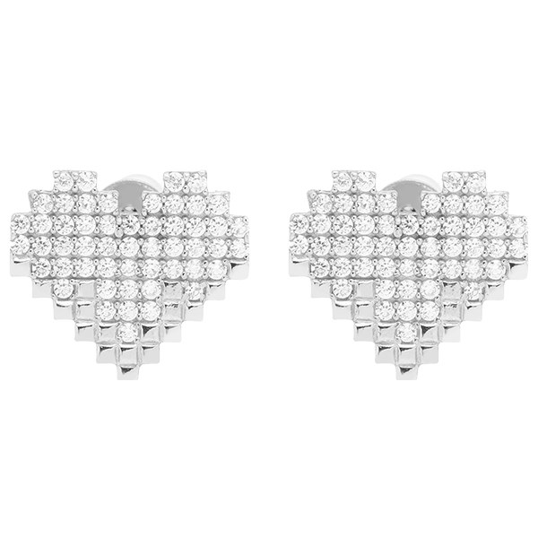 Bông Tai AvaJi AVJ.E000161.00 hình trái tim với họa tiết sắp xếp đính đá toàn bộ, đem lại một tổng thể sang trọng và thời thượng, phù hợp với nhiều phong cách các bạn nữ, thích hợp đeo hàng ngày.