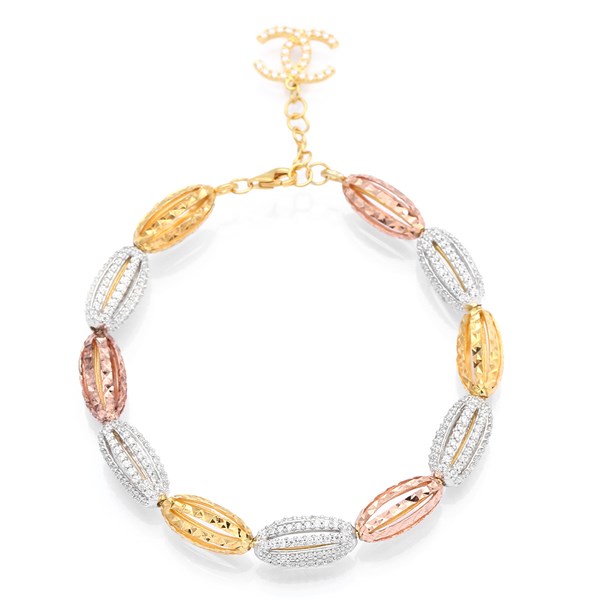 Lắc Tay Bạc Đính Đá Mạ Vàng 18K AvaJi AVJ.B000029 | Hình hạt gạo, có 3 màu bạc, vàng và vàng hồng | 16 - 17 - 18 | 13.1 | Vàng | 975.000 |