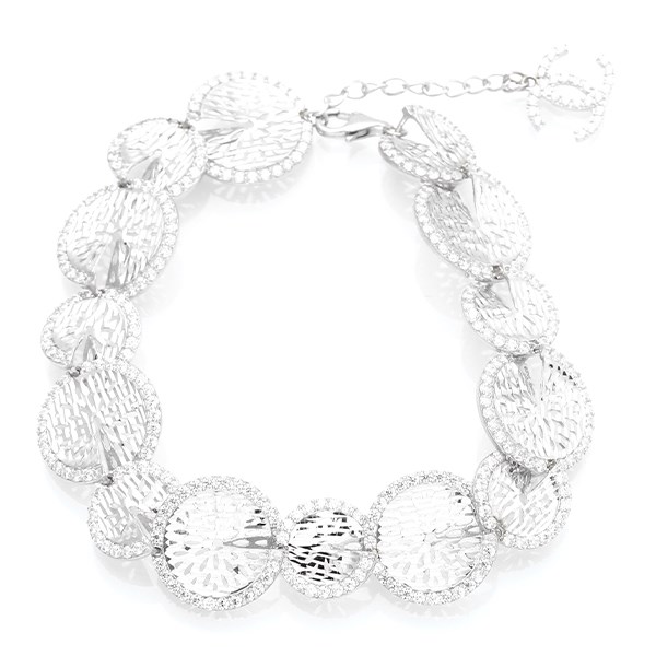 Lắc Tay Bạc Đính Đá Mạ Vàng Trắng AvaJi AVJ.B000076 | Nhiều vòng tròn đính đá nối với nhau, bên trong có khắc chữ | 16 - 17 - 18 | 15.48 | Bạc | 919.000 |