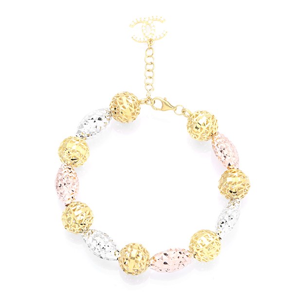 Lắc Tay Bạc Mạ Vàng 18K AvaJi AVJ.B000055 | Các hạt tròn và hạt gạo xếp xen kẽ nhau, có 3 màu bạc, vàng và vàng hồng | 16 - 17 - 18 | 15.66 | Vàng | 991.000 |
