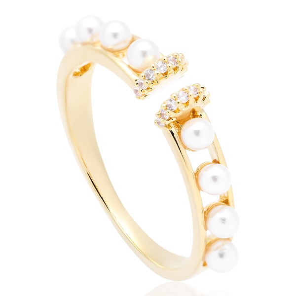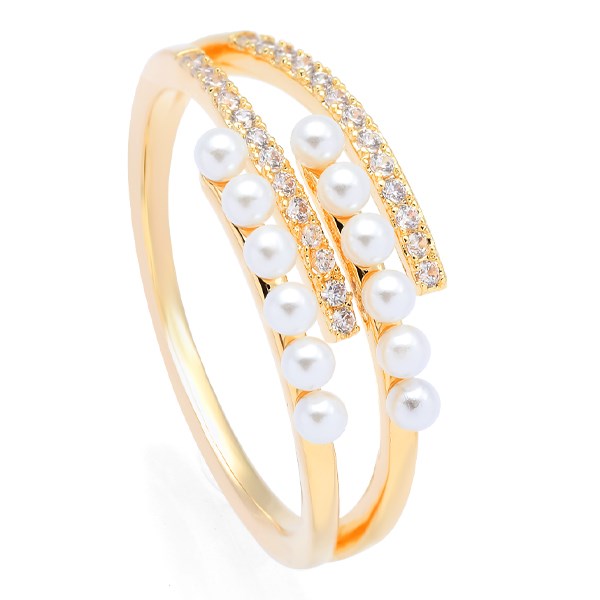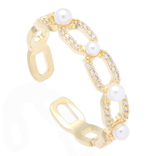 Nhẫn AVJ.R000606.00 thiết kế độc đáo với những mắt xích cách điệu, kết hợp ngọc trai tạo điểm nhấn xinh xắn, giúp các nàng trông thật nổi bật. Màu vàng làm cho chiếc nhẫn thêm trang nhã, cuốn hút.