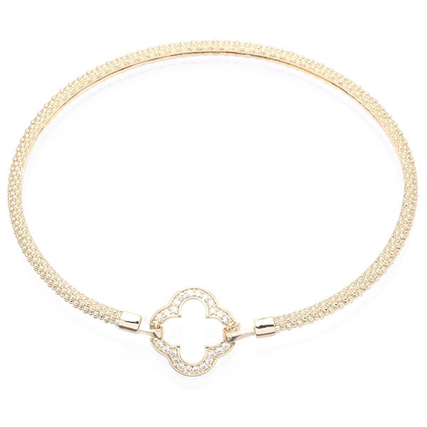 Vòng tay dáng hở hình cỏ bốn lá đính đá