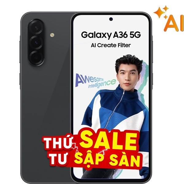 Samsung Galaxy A36 là smartphone tầm trung nổi bật với màn hình Super AMOLED 6.7 inch Full HD+, tần số quét 120Hz và độ sáng 1200 nits, mang lại trải nghiệm hình ảnh sống động. Hiệu năng mạnh mẽ nhờ chip Snapdragon 6 Gen 3, RAM 8GB và bộ nhớ 128GB có thể mở rộng.