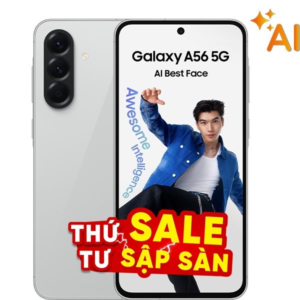 Samsung Galaxy A56 là smartphone tầm trung nổi bật với màn hình Super AMOLED 6.7 inch Full HD+, tần số quét 120Hz và độ sáng 1200 nits, mang lại trải nghiệm hình ảnh sống động. Hiệu năng mạnh mẽ với chip Exynos 1580 8 nhân tốc độ 2.9 GHz, RAM 8GB và bộ nhớ 128GB có thể mở rộng.