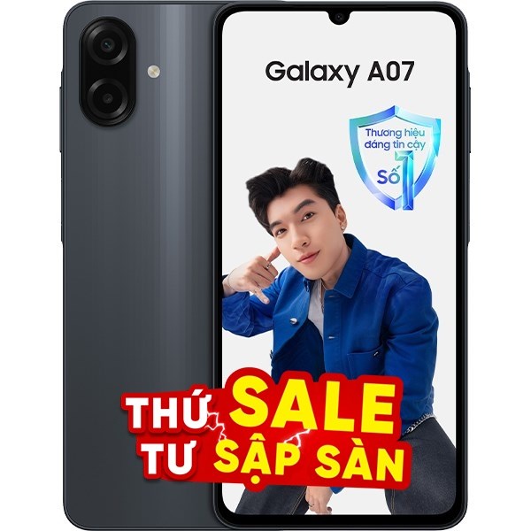 Máy dùng chip MediaTek Helio G99, RAM 4GB, bộ nhớ 64GB có thể mở rộng lên đến 1.5TB. Pin 5000mAh kèm sạc nhanh 25W, đạt chuẩn kháng nước bụi IP54, hỗ trợ kết nối đa dạng và jack tai nghe 3.5mm. Galaxy A07 là lựa chọn toàn diện, bền bỉ phù hợp nhu cầu hàng ngày với giá hợp lý.