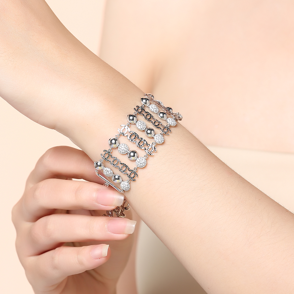 Sự kết hợp hài hòa cái tươi tắn tràn đầy sức sống của tuổi trẻ trong ánh kim lấp lánh của đá CZ sắc sảo và cái mặn mà duyên dáng của phái nữ trong sắc trắng của bạc Ý cao cấp, đã tạo nên những đường cong dịu dàng, mềm mại và đầy quyến rũ cho cổ tay quý cô. Ngoài ra, chiếc móc khóa nhỏ xinh lại rất bền chắc có thể cho khả năng điều chỉnh kích cỡ vừa vặn, dễ chịu khi đeo.