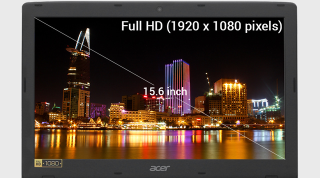Màn hình 15.6 inch rộng rãi mang lại không gian làm việc hay giải trí thích mắt. Ngoài ra, còn có độ phân giải Full HD (1920 x 1080 pixels) cho hình ảnh sắc nét hơn.