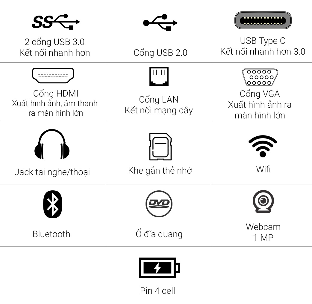 RAM đời mới DDR4 sẵn 4 GB và bạn có thể nâng cấp lên tối đa 8 GB (2 khe).
