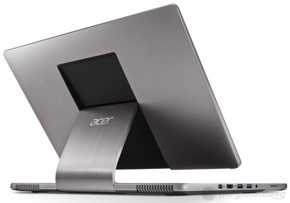 Aspire R7 là một trong những sản phẩm mới nhất của Acer vừa được giới thiệu tại New York tháng 5/2013 đã tạo được ấn tượng khá tốt với thiết kế bản lề được gọi là Ezel cho phép màn hình của máy hoạt động linh hoạt tuyệt vời, bạn có thể dùng nó dù ở bất kỳ vị trí nào, có thể lật ngược màn hình lại che đi bàn phím và hưởng thụ trọn vẹn màn hình cảm ứng 15 inch cùng Window 8.