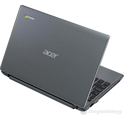 Toàn bộ thân máy được làm từ nhựa cao cấp với một màu xám mờ sang trọng. Nắp máy khá đơn giản, chỉ được bố trí logo Acer chính giữa và một logo Chrome nho nhỏ ở góc, cho biết đây là một mẫu ChromeBook thực thụ. Acer C710 không mỏng lắm, nhưng một số đường vát cong hợp lý cho cảm giác thân máy khá gọn gàng và bớt cục mịch.