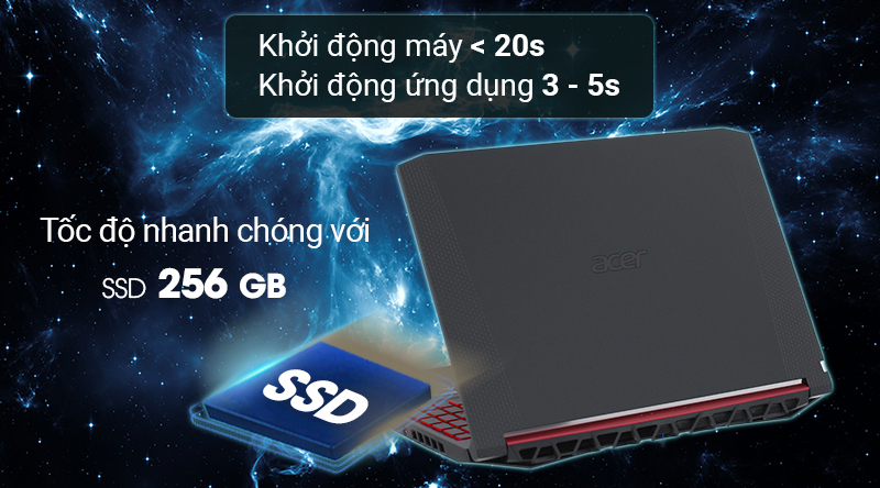 Ổ cứng SSD 256GB NVMe PCIe nâng cao tốc độ xử lí giúp khởi động máy nhanh hơn, vào game nhanh hơn. Ngoài ra máy còn hỗ trợ khe cắm HDD SATA cho người dùng tiện lợi nâng cấp dung lượng ổ cứng.