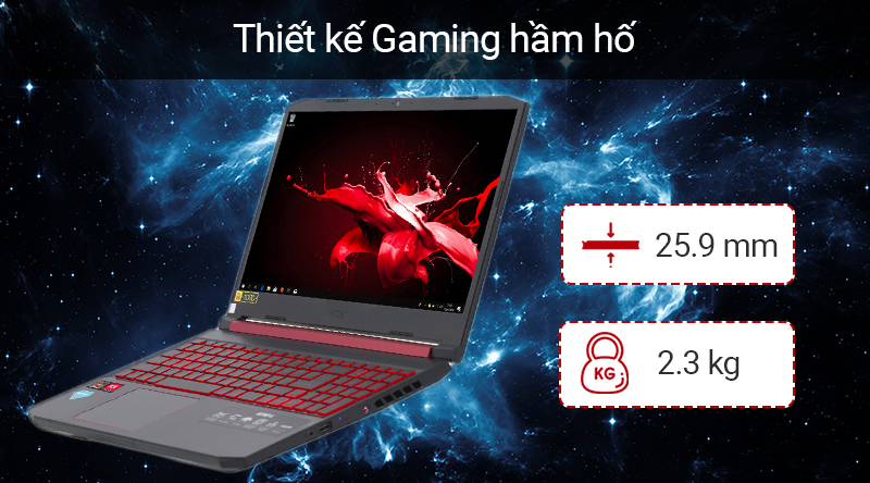 Từng đường nét trên laptop Acer Nitro đều được hoàn thiện tỉ mỉ với phong cách gaming mạnh mẽ, chinh phục mọi game thủ. Máy nặng 2.3 kg - dễ dàng để đem theo chiến cùng bạn bè.