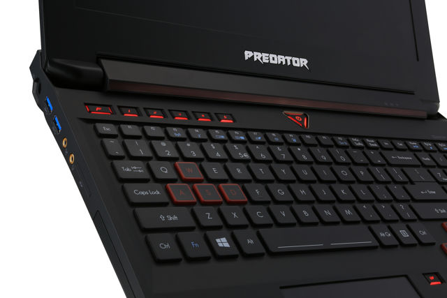 Phía trên bàn phím chính còn có hệ thống phím Macro, các phím đó có thiết kế khác biệt hoàn toàn và có thể thiết lập chức năng bằng phần mềm PredatorSense. Nút nguồn hình tam giác ngược với viền sáng xung quanh là điểm nhấn đáng kể về thiết kế bên trong.