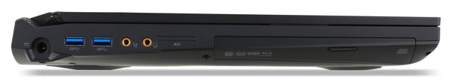 Bên cạnh trái của máy có ổ đĩa quang, 2 cổng USB 3.0 và 2 cổng audio.